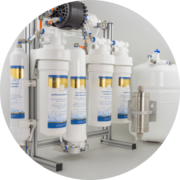 Auf seinem Weg vom Leitungswasser zur optimalen Strukturierung durchläuft das Wasser unsere optimal abgestimmte AQUOS MONIC Wasseraufbereitung.